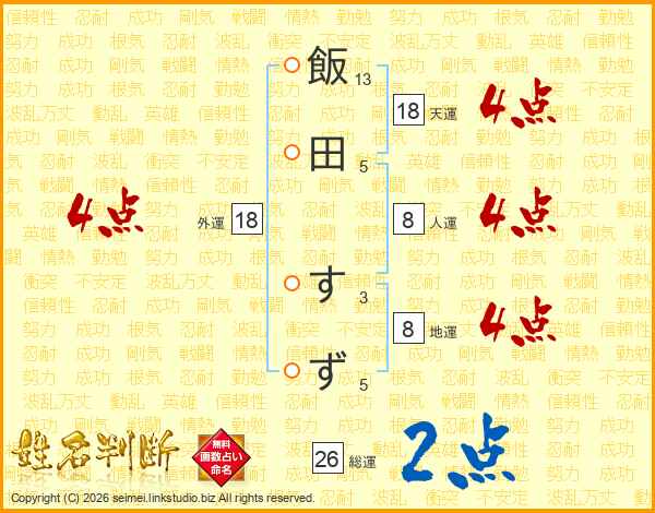 飯田すずさんの総運は26画の2点!