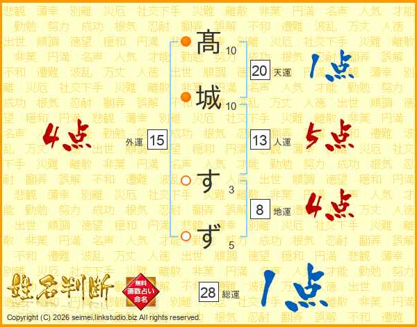 髙城すずさんの総運は28画の1点!