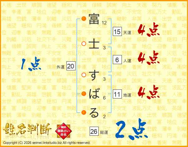 富(12画)士(3画) す(3画)ば(6画)る(2画)