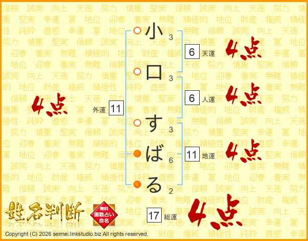 小口すばるさんの総運は17画の4点!