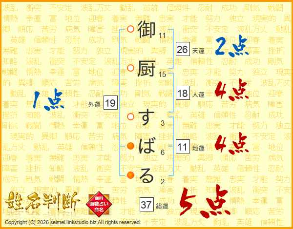 御厨すばるさんの天運は26画の2点!