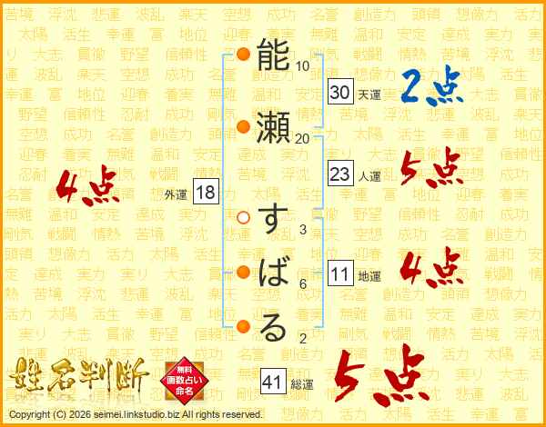 能瀬すばるさんの総運は41画の5点!