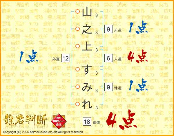 山之上すみれさんの総運は18画の4点!