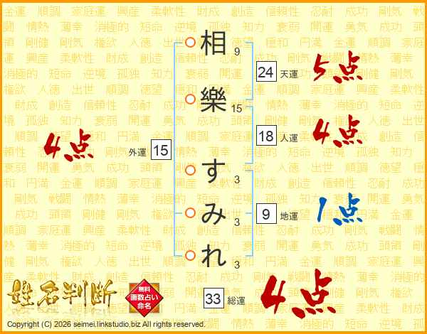 相樂すみれさんの総運は33画の4点!