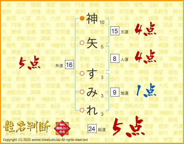 神(10画)矢(5画) す(3画)み(3画)れ(3画)