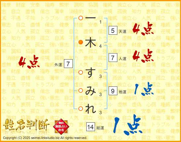 一(1画)木(4画) す(3画)み(3画)れ(3画)