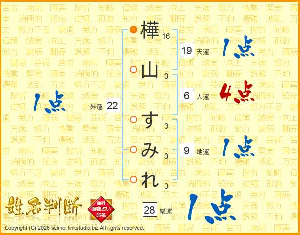 樺(16画)山(3画) す(3画)み(3画)れ(3画)