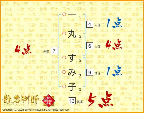 一丸すみ子さんの総運は13画の5点!