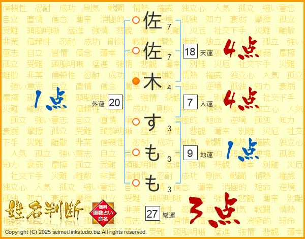 佐佐木すももさんの総運は27画の3点!