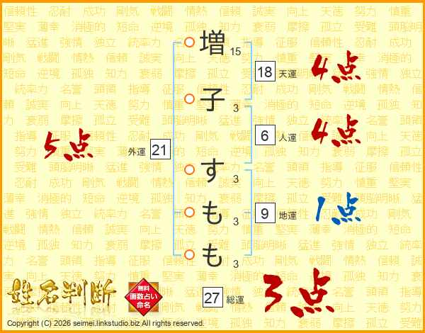 増子すももさんの総運は27画の3点!