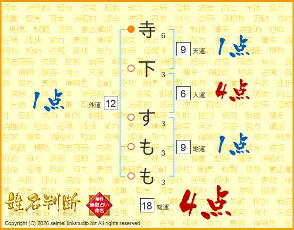 寺下すももさんの総運は18画の4点!