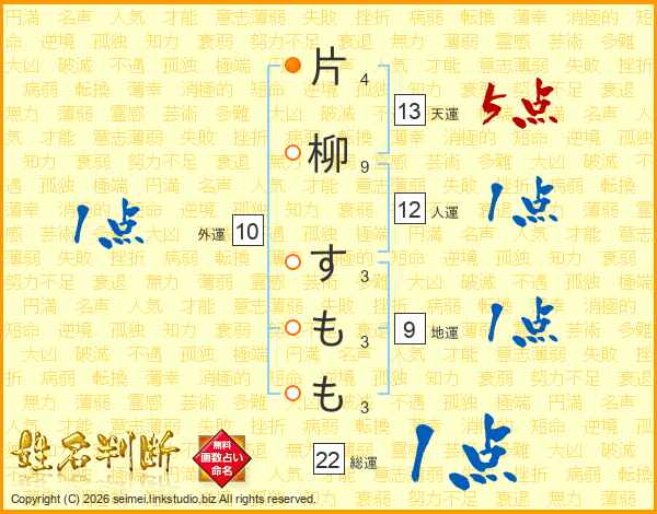 片柳すももさんの総運は22画の1点!