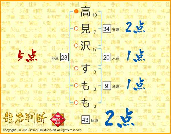 高(10画)見(7画)沢(17画) す(3画)も(3画)も(3画)