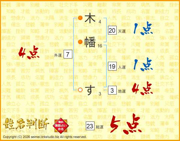 木幡すさんの総運は23画の5点!