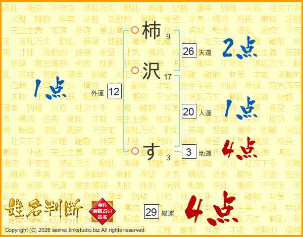 柿沢すさんの総運は29画の4点!