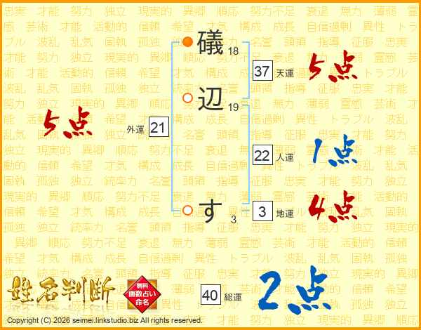 礒辺すさんの総運は40画の2点!