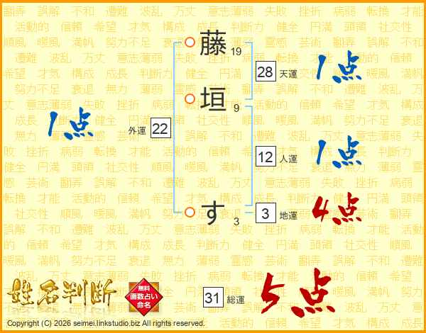 藤垣すさんの総運は31画の5点!