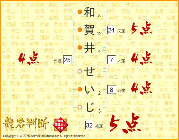 和(8画)賀(12画)井(4画) せ(3画)い(2画)じ(3画)