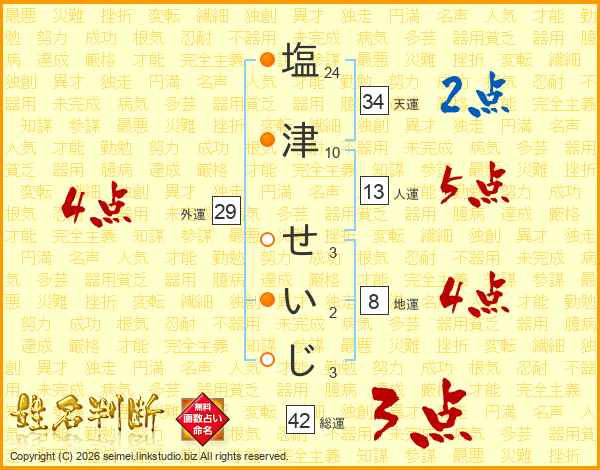 塩(24画)津(10画) せ(3画)い(2画)じ(3画)