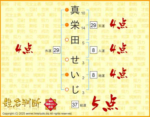 真(10画)栄(14画)田(5画) せ(3画)い(2画)じ(3画)