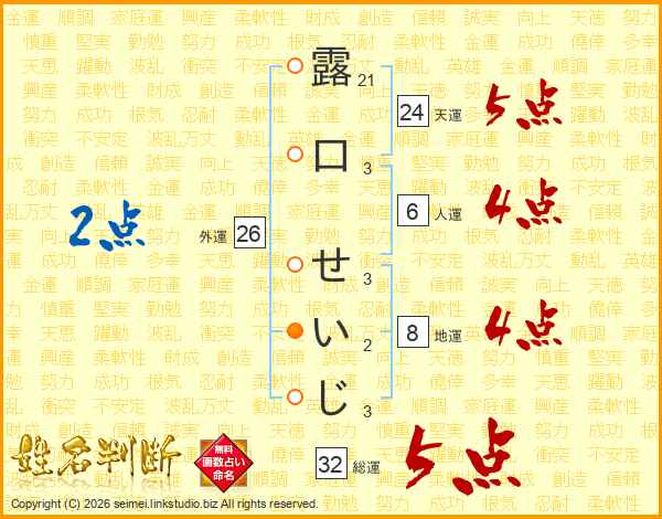 露口せいじさんの総運は32画の5点!