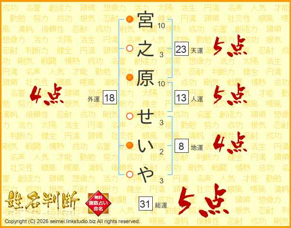 宮之原せいやさんの総運は31画の5点!