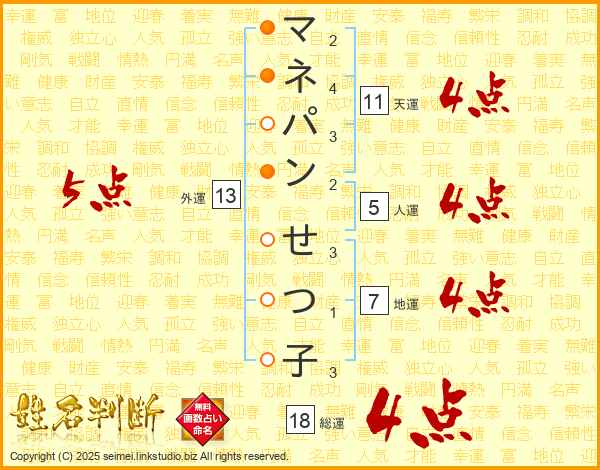 マ(2画)ネ(4画)パ(3画)ン(2画) せ(3画)つ(1画)子(3画)