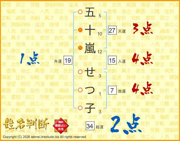 五十嵐せつ子さんの天運は27画の3点!