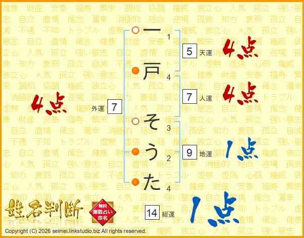 一戸そうたさんの総運は14画の1点!