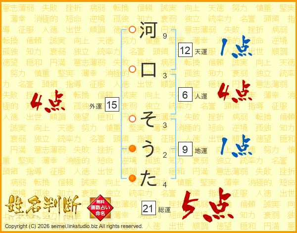 河口そうたさんの総運は21画の5点!