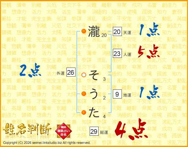 瀧そうたさんの総運は29画の4点!