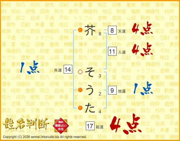 芥そうたさんの総運は17画の4点!