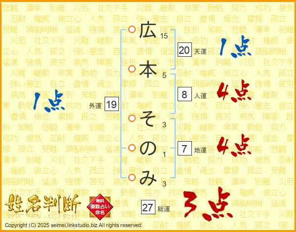 広本そのみさんの地運は7画の4点!