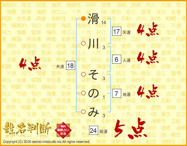 滑川そのみさんの天運は17画の4点!