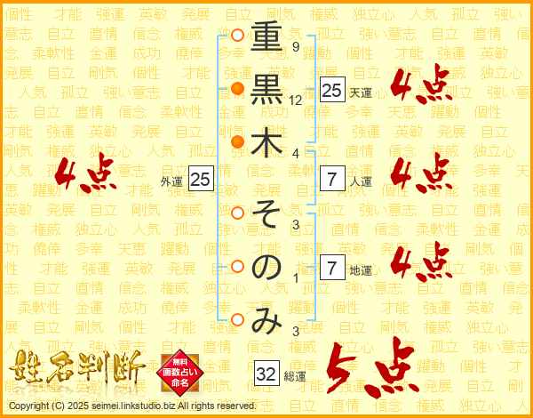 重黒木そのみさんの天運は25画の4点!