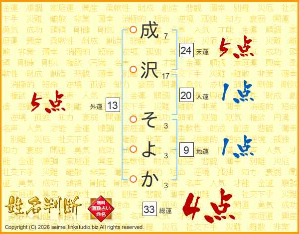 成沢そよかさんの総運は33画の4点!