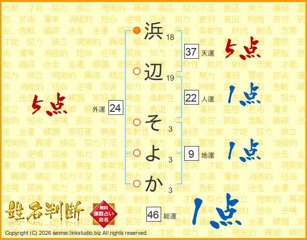 浜辺そよかさんの総運は46画の1点!