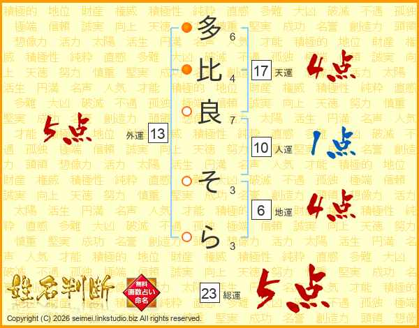 多(6画)比(4画)良(7画) そ(3画)ら(3画)