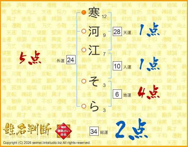 寒河江そらさんの総運は34画の2点!