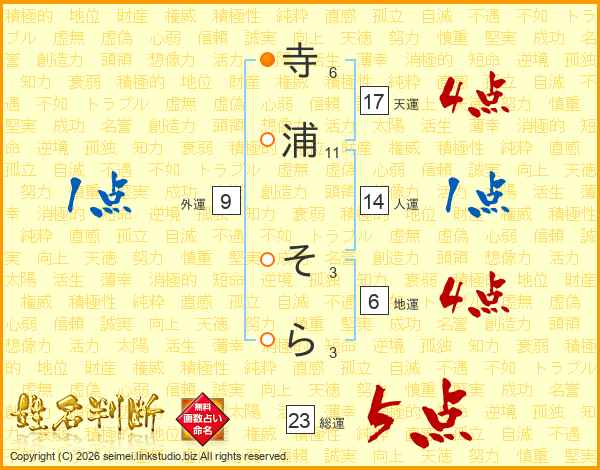 寺(6画)浦(11画) そ(3画)ら(3画)