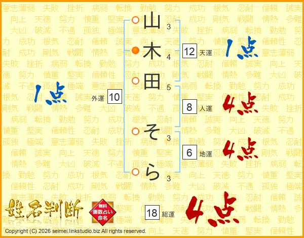 山木田そらさんの総運は18画の4点!