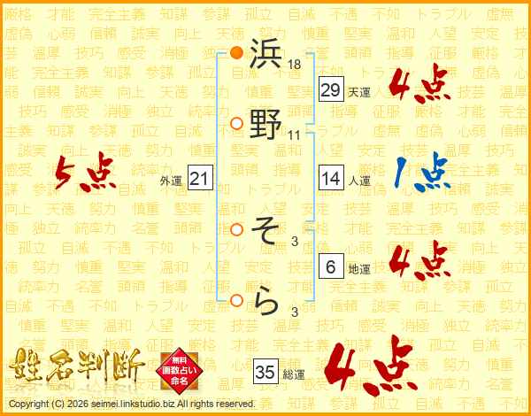 浜野そらさんの総運は35画の4点!