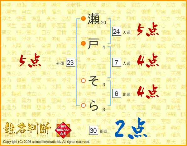 瀬(20画)戸(4画) そ(3画)ら(3画)