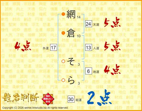 網倉そらさんの総運は30画の2点!