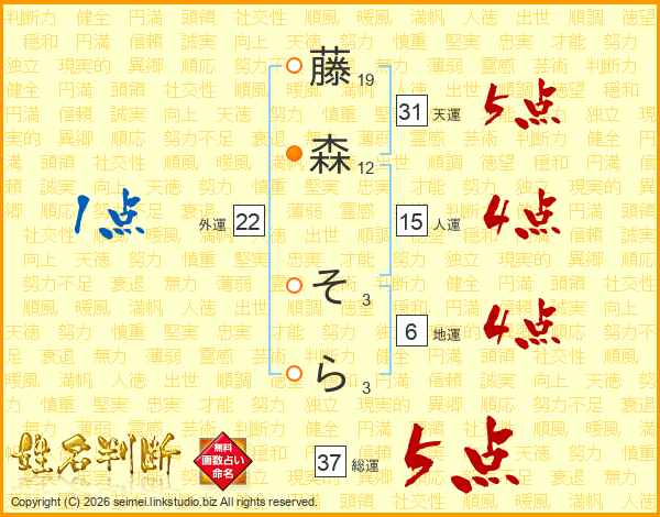 藤森そらさんの総運は37画の5点!