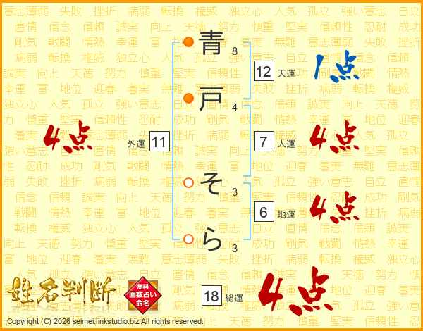 青戸そらさんの総運は18画の4点!