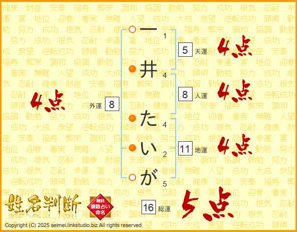 一井たいがさんの総運は16画の5点!