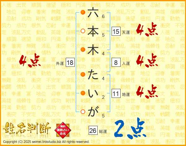 六本木たいがさんの総運は26画の2点!
