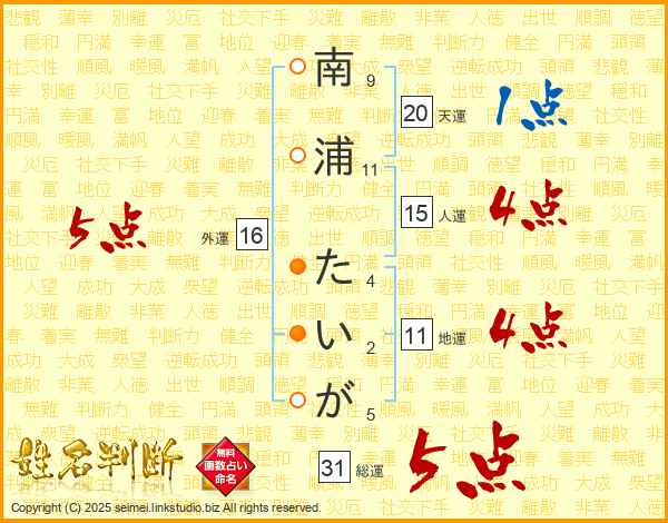 南浦たいがさんの総運は31画の5点!