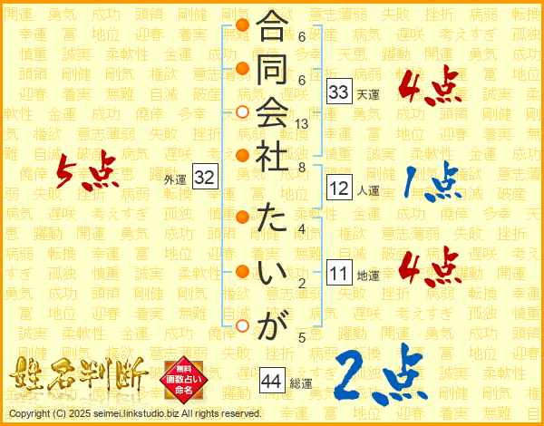 合同会社たいがさんの総運は44画の2点!
